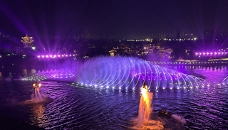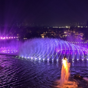 华灯初上,“幻彩流光”泛光秀拉开了户外活动的序幕。夜幕下“星云”闪耀,呈现着时尚与文化的融合之美。“浩渺星空”光影水秀中,喷泉、激光、音乐相互配合,水幕上不断闪现一幅幅科幻场景,伴随着灯光与音乐,一幅浩淼星空、未来世界的美妙图景巧妙呈现。