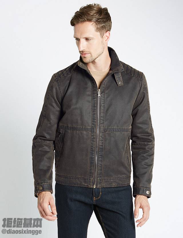 它的T恤和四袋夹克有点 Barbour International 以及 Belstaff 的感觉,但是面料上就差远了。粗狂、做旧是这个系列的特色 ▼