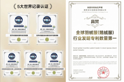 此外,高梵还宣布发明专利数达到全球羽绒服行业发明专利第一,拥有161项发明专利,在耐穿、抗菌、轻暖、抗静电、抗撕破等方面获得WRCA认证的5大世界纪录。2024年双11期间,高梵在天猫首小时成交量就超去年全天,行业GMV力压之禾、Maxmara等一众高端品牌,登顶TOP1。