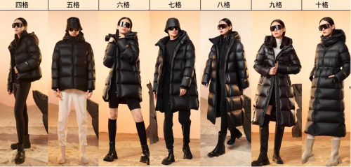 (黑金鹅绒服产品间唯一的区别是款式长短不同)