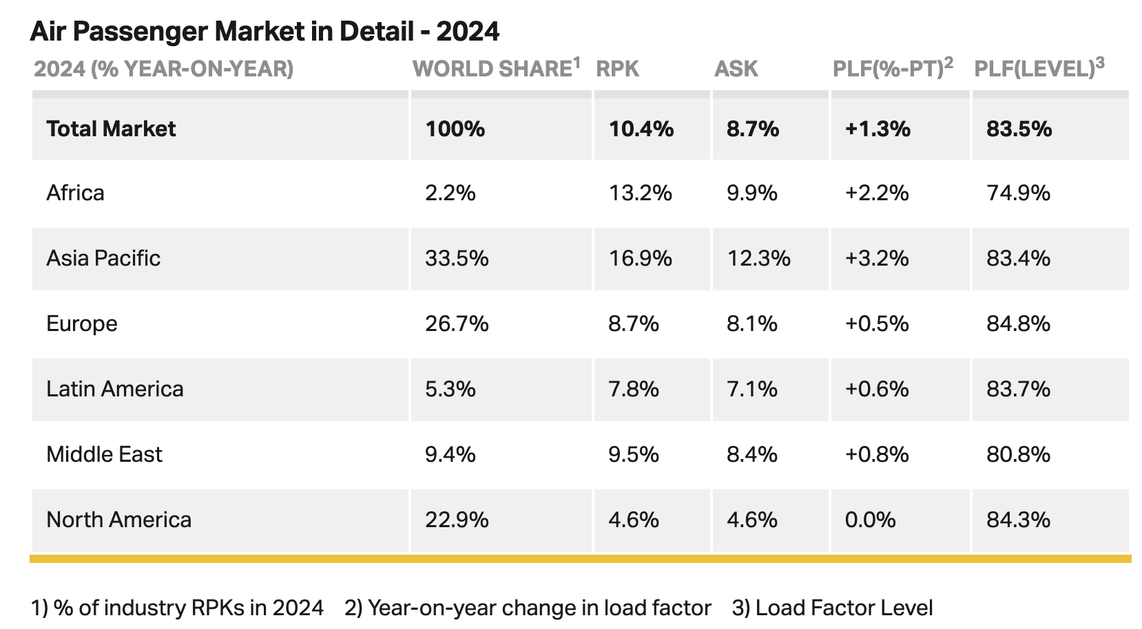当地时间1月30日,国际航空运输协会官网发布新闻稿指出,按照收入客公里计算,2024年全球航空客运总量创新高,同比增长10.4%,较2019年水平高3.8%。2024年全球航班平均客座率也达到创新高的83.5%,高于2023年的82.2%。