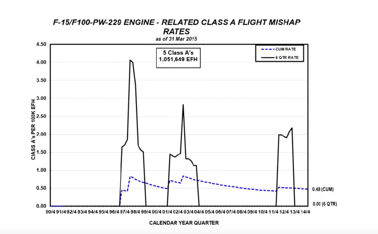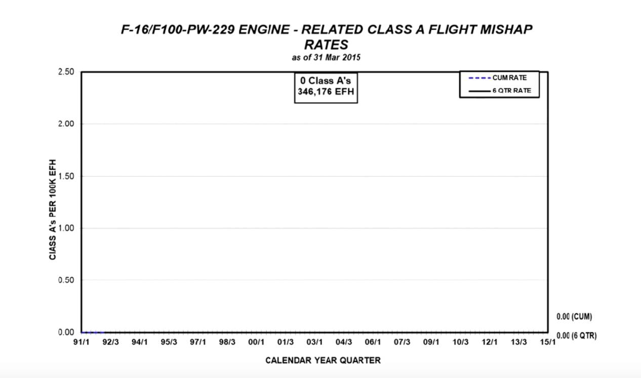 ▲同时间段内F-15的PW-229有5起事故,F-16的PW-229没有一起