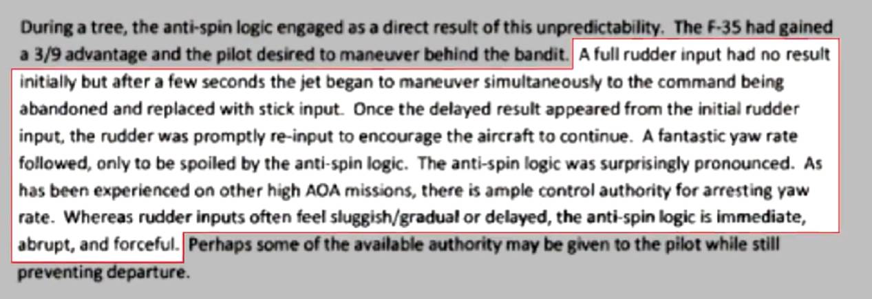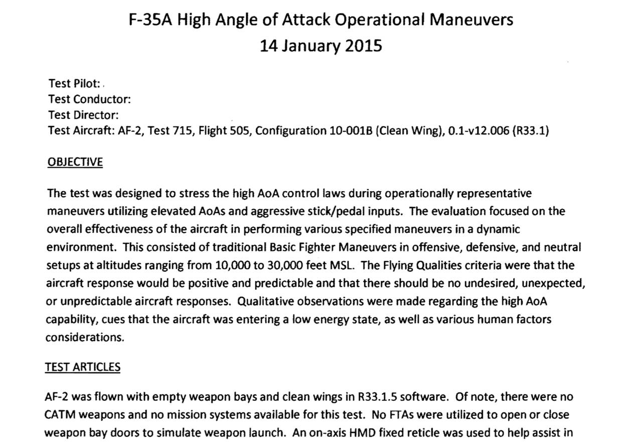 可以看到报告中提及测试目的并非格斗训练,而是测试F-35A的大迎角飞行(AoA,Angle of Attack)时的飞控程序控制性能,并选择F-16作为能量参照机。具体测试结果如下: