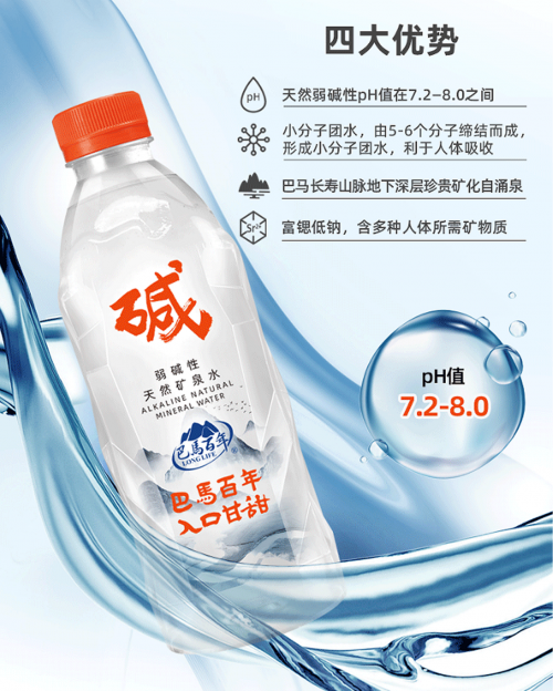 此外,巴马百年矿泉水还呈天然弱碱性,pH 值稳定在 7.2 - 8.0 之间,也刚好契合世界卫生组织等权威机构提出了健康好水的严格标准,长期饮用巴马百年这样的弱碱性水,有助于维持人体酸碱平衡,减轻身体负担,让身体时刻保持良好的状态。而且,得益于得天独厚的地理环境,巴马独特的地质断裂带,赋予泉水高达 0.4 - 0.58 高斯的地磁能量,将其切割成小分子团水,而这刚好也是权威机构提出的健康好水呈小分子团水的特性。