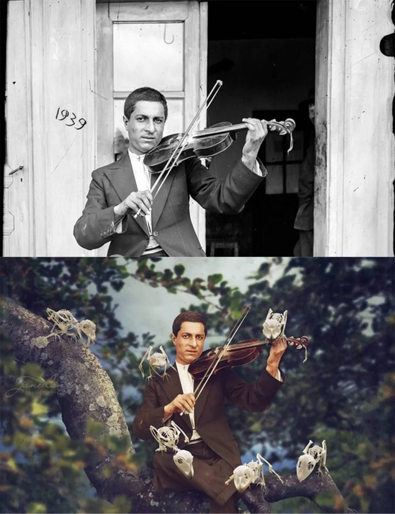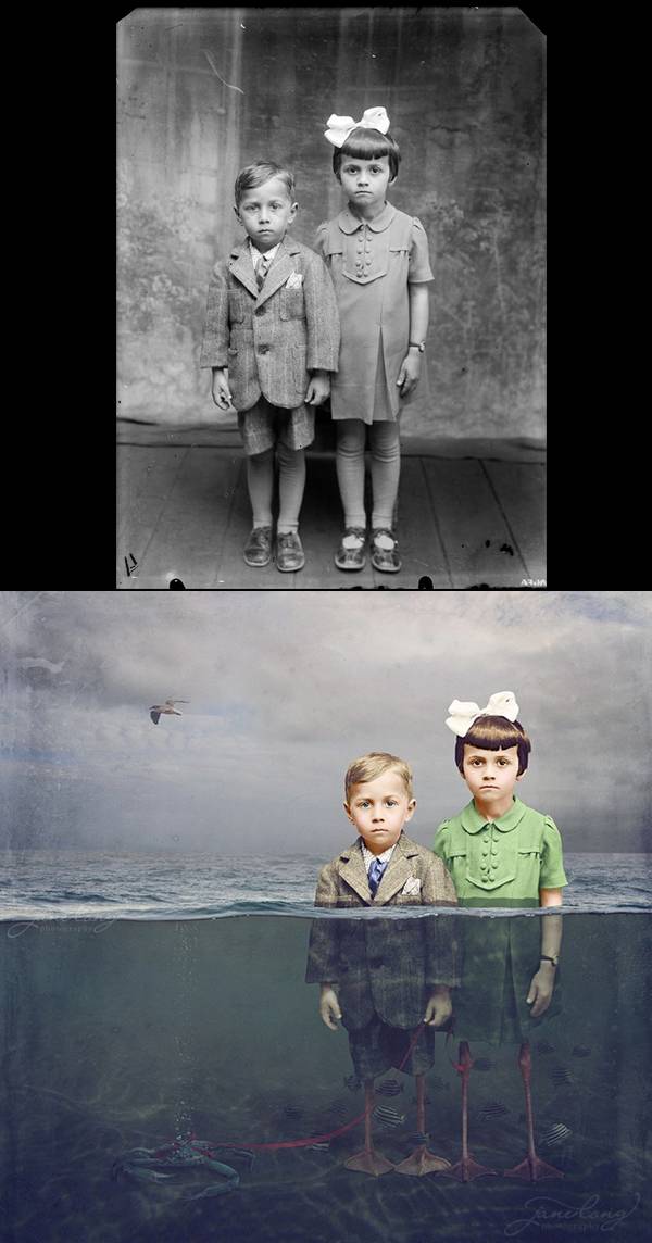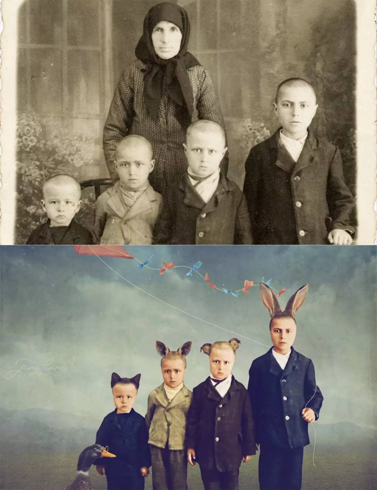 这些照片都是出自于澳洲女摄影师Jane Long根据老照片翻新过来的,Jane Long以大约一个半世纪前的老照片为素材,对这些照片重新进行了后期处理,制作了这一批想象力和创意感爆棚的超现实主义作品,并将其命名为《Dancing with Costica》。
