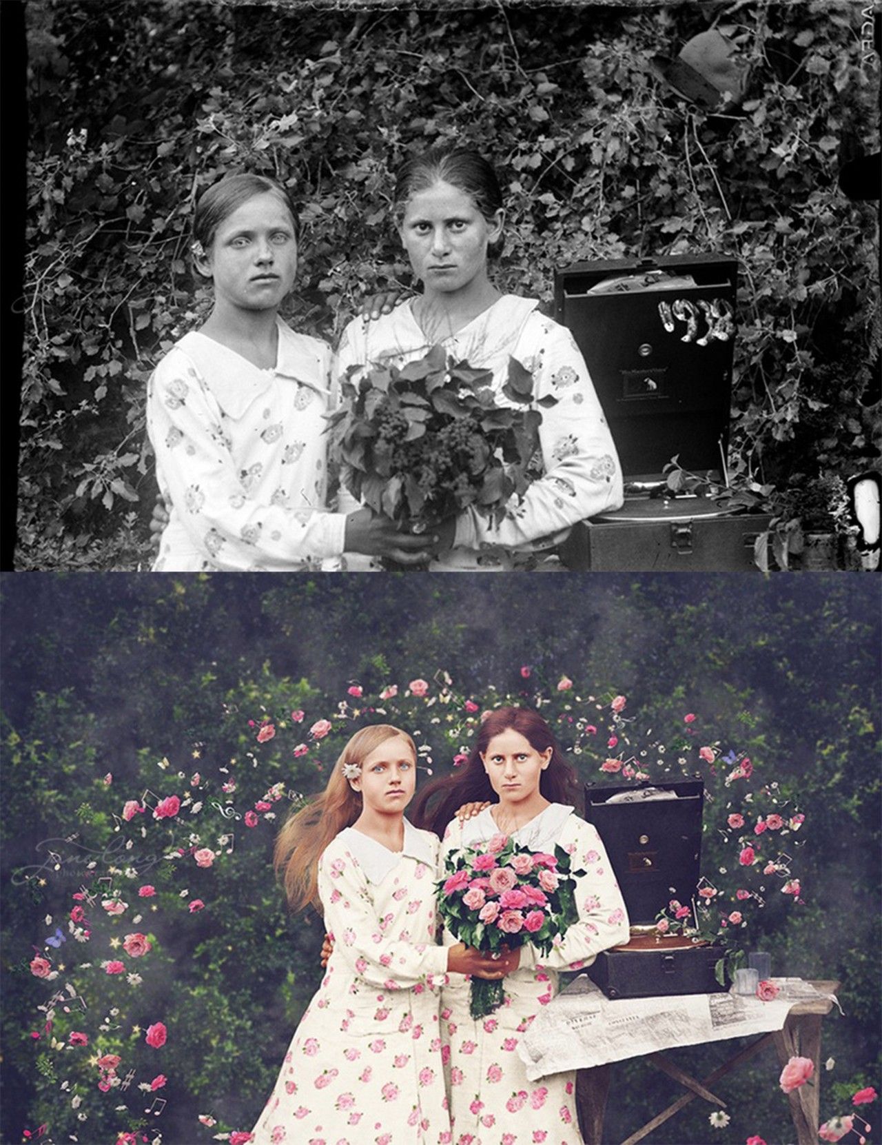 她利用自己的后期技术加上自己的想法进行数字化的处理,然后,就变成了我们所看到的样子。