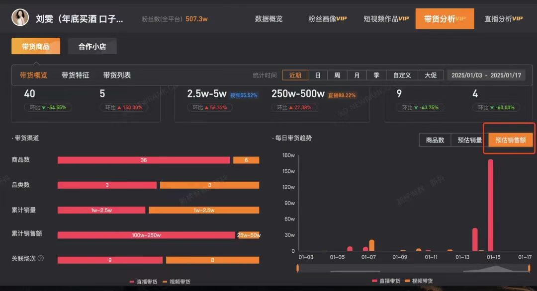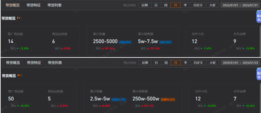 刘雯短视频带货数据对比:上图为2024年1月,下图为2025年1月