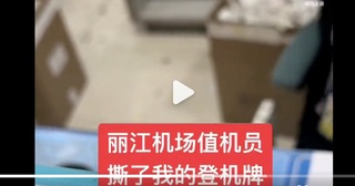 2月9日,一博主发布视频称,他在云南丽江三义国际机场转机时与值机员发生口角,值机员撕掉了他的登机牌。