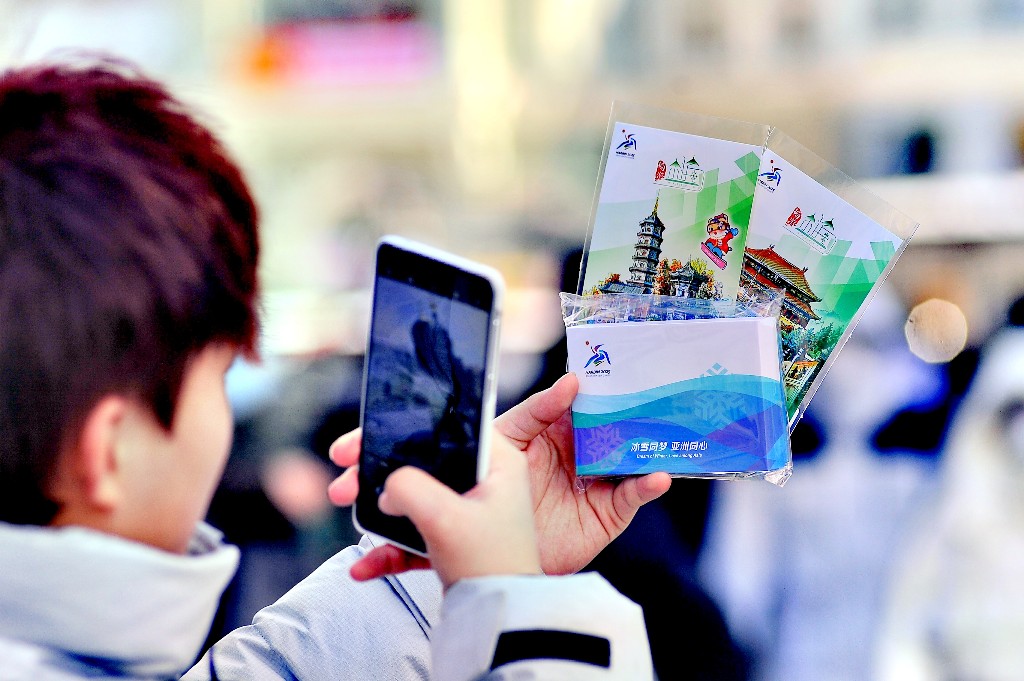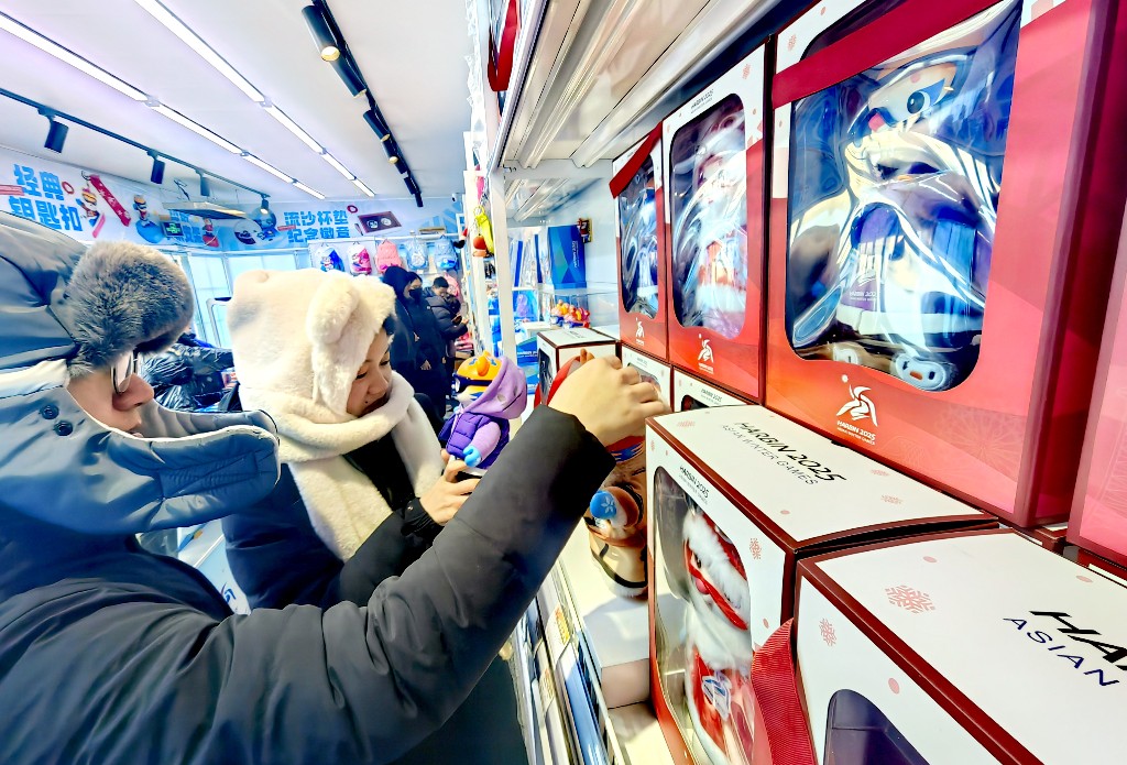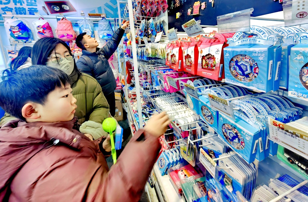 第九届亚冬会开幕后,不仅吸引了众多体育爱好者的目光,也带动了文创产品的销售。8日,哈尔滨市道里区建筑艺术广场上的亚冬会特许零售店内,购买主题文创产品的游客络绎不绝。