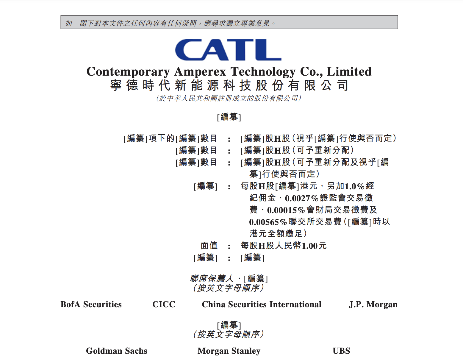 根据招股书,宁德时代赴港上市的保荐人及协调人包括美银、中金、摩根大通、高盛、瑞银等多家知名金融机构。不过,招股书没有透露此次发行H股募集的具体金额。