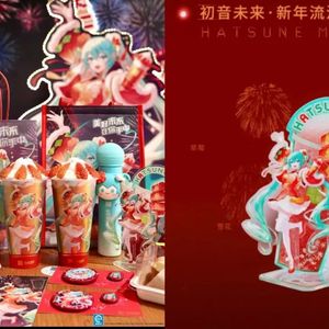 不同的是,奈雪联名绑定了初音未来这一大IP,新年新品“奈雪莓好未来小红瓶”采用的“镭射杯”,被称 “奈雪最值得收藏的杯子”,徽章、镭射票、流沙立牌、麦克风保温杯、红包以及主题杯套、袋装等设计都融合了初音未来人物形象以及新年元素,成功吸引了大量谷子爱好者。