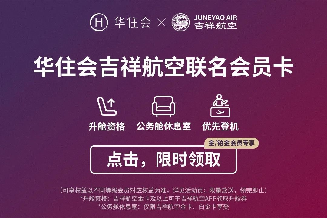 比如去年年末与吉祥航空联名会员卡,让双方会员身份实现了相互认证,积分也可以互通,华住会会员们据不同等级可享受吉祥航空额外免费行李额/优先值机登机/贵宾休息室和升舱等联名会员卡权益。不到2个月,再推出华住会x滴滴出行联名会员,让会员权益和会员身份含金量再度提升。