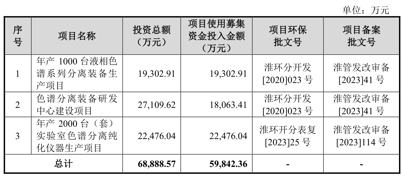 具体看,汉邦科技的募投,主要还是扩产和投研有关,“年产1000台液相色谱系列分离装备生产项目”和“年产2000台(套)实验室色谱分离纯化仪器生产项目”建设期均为2年,前者扩大生产级小分子液相色谱系统及大分子层析系统产能,后者扩大实验室液相色谱设备的生产投入和产能。