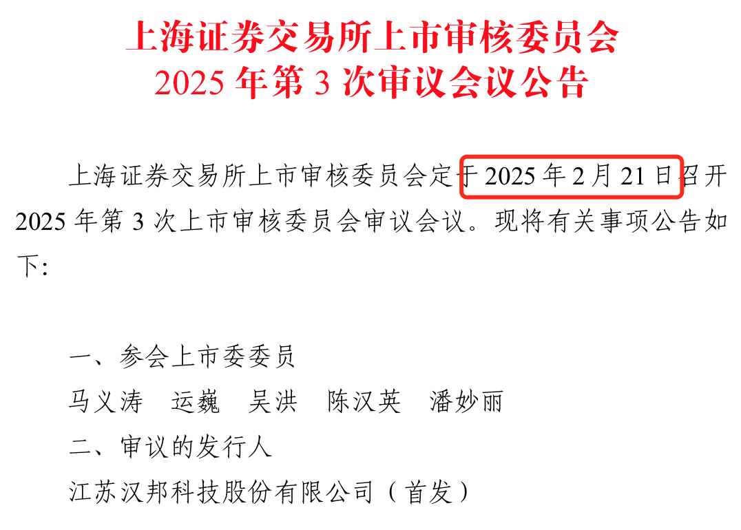 作为今年上交所第二家上会IPO公司,江苏汉邦科技股份有限公司(简称汉邦科技)受市场关注。根据安排,汉邦科技将于2月21日上会,目的地科创板。