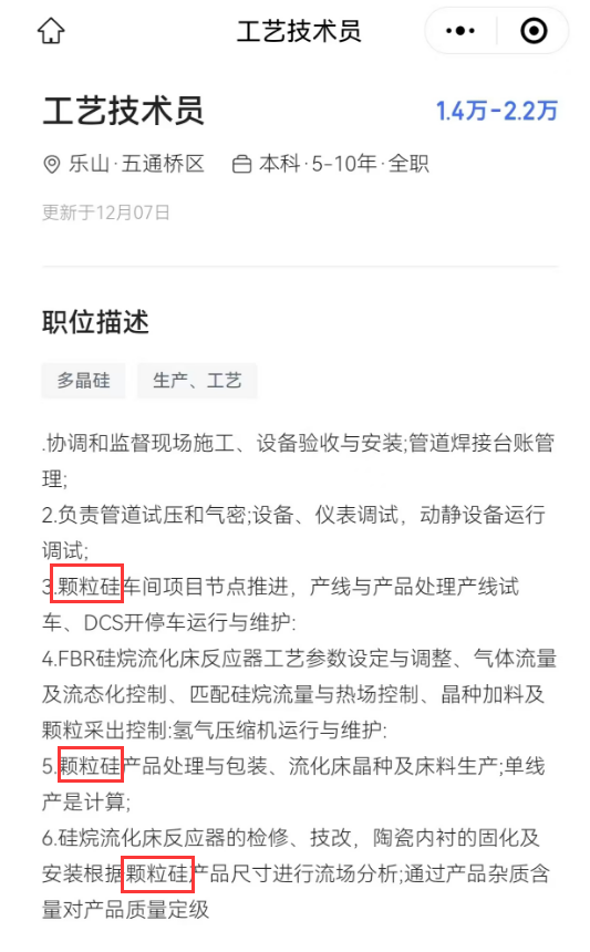 但不管怎样,现在看这个招聘广告已经完全实锤了,只不过当时还叫颗粒硅,不叫粒状硅。