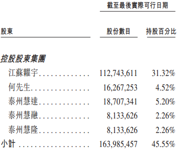 IPO前,中慧生物由安有才、江苏粜宇(安有才及其配偶分别拥有70%及30%权益的公司)及何一鸣组成的一致行动人士集团共同拥有约35.84%的股份。一致行动人士集团及员工持股平台构成公司的控股股东集团,合共持有约45.55%的股份。