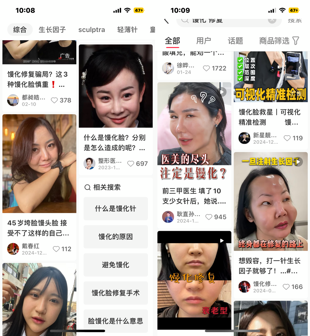 “去年下半年,小红书上馒化修复相关的帖子逐渐多了起来,其中有不少是比较擅长做馒化修复的机构与医生针对用户痛点做的案例分享,吸引了很多用户开始关注这类修复项目。”黄向平说道。
