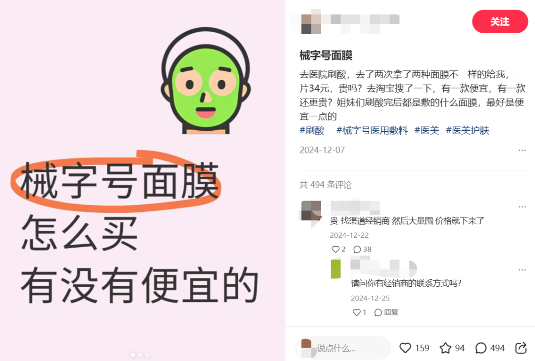 很多美妆企业也盯上了术后修复领域。国家统计局数据显示,2024年1-11月,化妆品零售总额累计达到4015亿元,同比增速放缓,甚至出现了1.3%的负增长;内卷严重的美妆品牌开始向医美市场寻求增量,械字号面膜、修复类乳液、乳霜成为品牌们入局的首选。