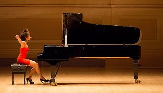 勃拉姆斯是她最近的激情所在。“在我20多岁的时候,我觉得勃拉姆斯太过规矩了”。今年2月份的时候王羽佳30岁,“现在我最喜爱的是勃拉姆斯的Intermezzi Op 117, C小调第3号。天呐,我真的好爱它!”她也有可能是在说鞋子,她也很爱鞋子。“在弹奏勃拉姆斯的时候,你必须要有立足地面的感觉,就好像曲子的力量是从你的脚上出来,而琴键只是手指的延伸。我记得好像是里赫特说过,他是用他的大腿在弹奏......”弹琴的时候,里赫特穿着肥大的裤子,王羽佳的腿则常常露出来。一则《纽约客》的报道也谈论过王羽佳的演出服装,“她弹奏的时候,她身上那极其短小而贴身的裙子或者是那露背晚礼服也跟着跃动,给人一种近乎赤裸的印象”。