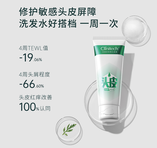 而专研敏感头皮的功效性头皮护理品牌科丽尼Clinitech,来源于“Clinical Technology”,字面意思是临床技术。Clinitech每一款产品都源于医院临床实践的技术总结,意为用科技美丽您。科丽尼历经14余年在头皮护理领域的深耕,关注到时下头皮护理产品在屏障修复以及敏感头皮护理功效方面的薄弱,从而打造出新的产品细分品类:头皮素。