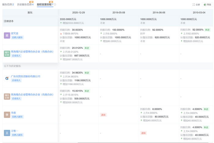 彼时的李蓓曾是泓湖私募的创始股东之一。天眼查App数据显示,在2010年3月泓湖私募成立之初,梁文涛持有该公司92%的股份,李蓓和王维一也各自持有公司4%的股份;2014年6月王维一退出该公司股东之列,李蓓的持股比例随之上升至8%;2019年5月李蓓不再担任该公司股东,梁文涛的持股比例上升至100%。