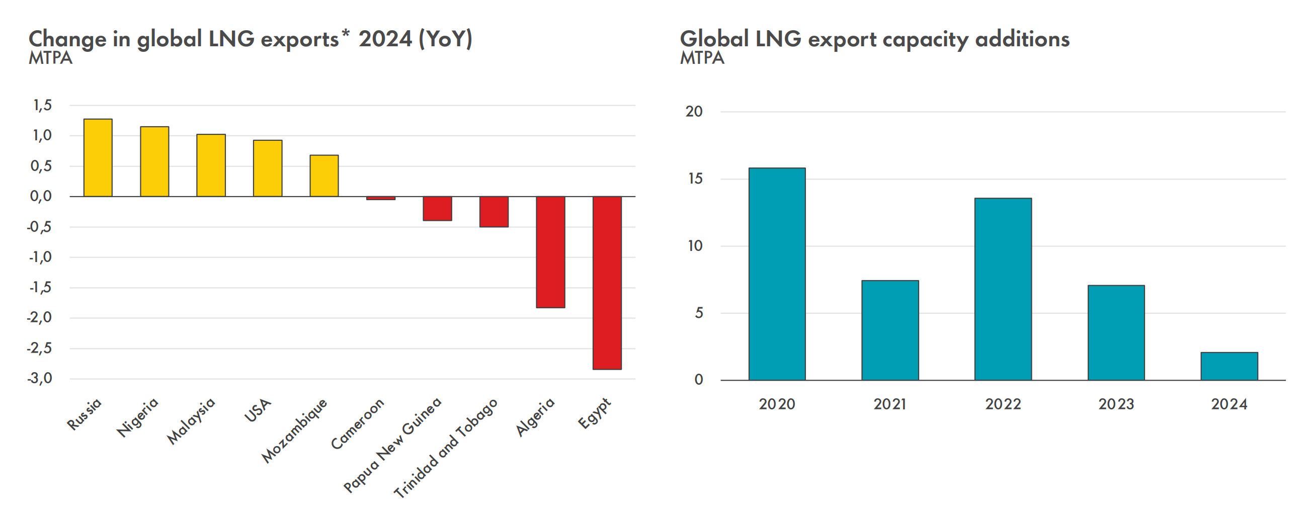 《报告》称,由于新供应开发受限,2024年全球LNG贸易量仅增长200万吨,至4.07亿吨,为10年来最低年度增幅。