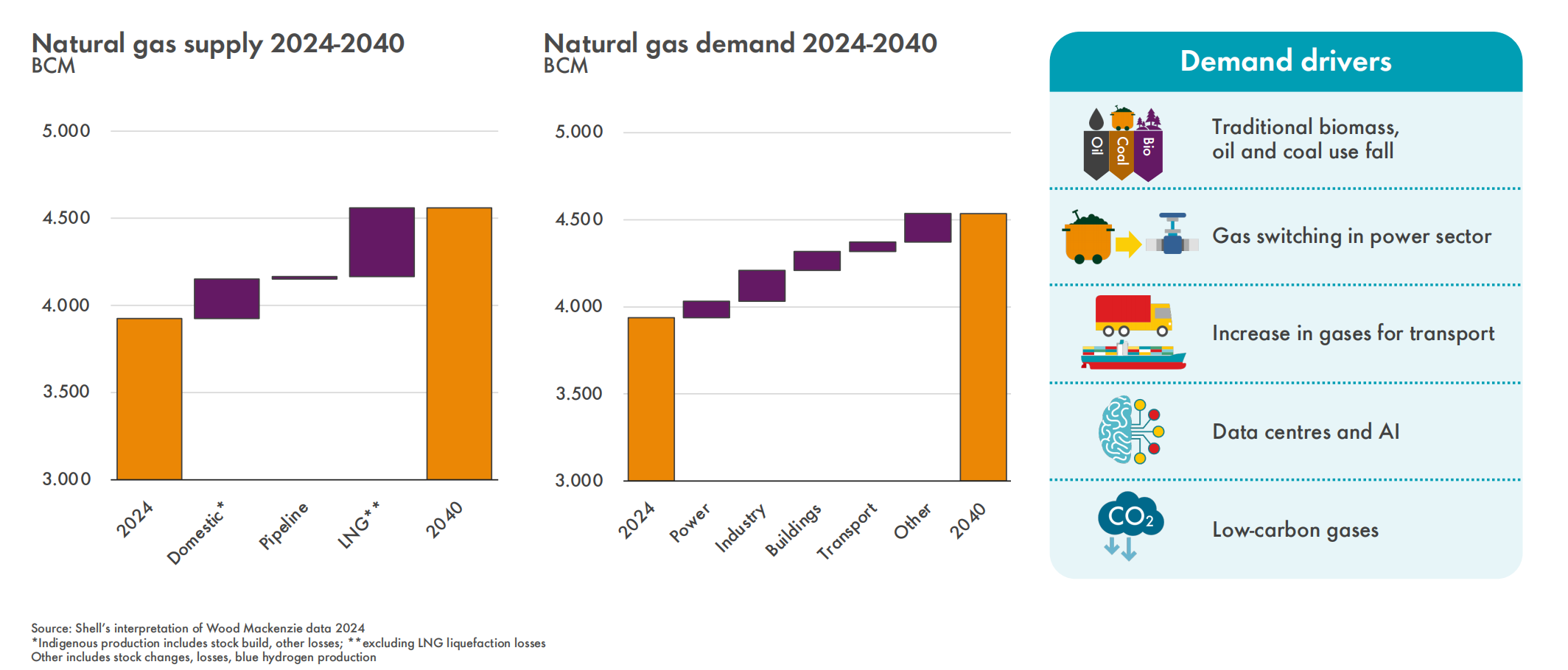 中间图:2024 - 2040 年天然气需求 右图:需求驱动因素 图片来源:《壳牌液化天然气(LNG)前景报告2025》