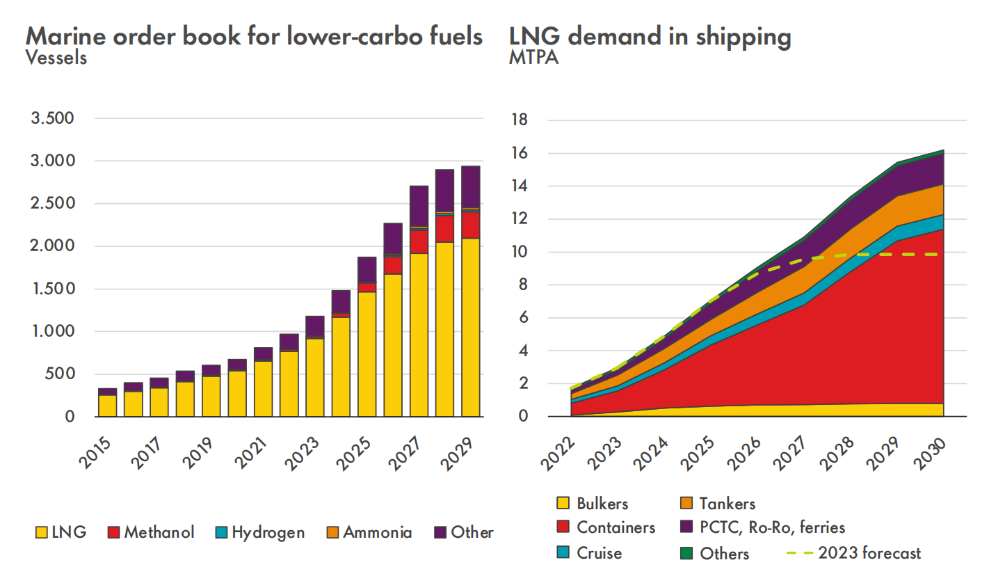 例如,在海洋领域,壳牌预计,随着LNG动力船舶订单量的增长,该市场的需求将在2030年前增至每年超过1600万吨,较之前的预测增长60%。