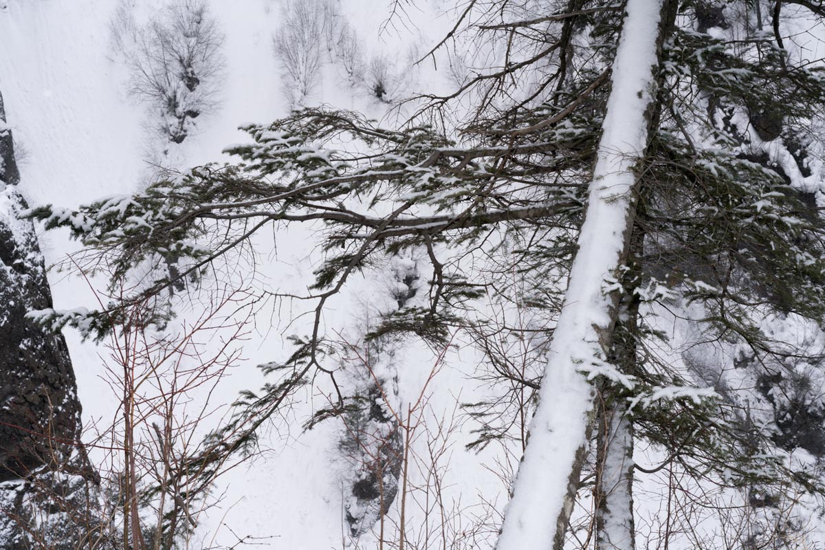 接下来的四天里,我从西坡和北坡各上了一次长白山,又坐了绿皮火车移动百多公里,逛了一些平房民居。每天长白山上都在下很大的雪,所以我既没看到天池,也没看到主要景点比如北坡的瀑布,景点空空荡荡,多数时候我一个人在堆满雪的峡谷里、森林中、通勤车里看着风雪发呆。我简直乐坏了,一个白色的世界,没什么游客,也没人催促我,安静而且安全,密集的风雪卷过松林,岩壁被雪皴出各种图案。天时晴时阴,雪山斑驳,冒着热气的泉水熏着冰柱,除了景区管理还有点糙之外,一切都正合我意。