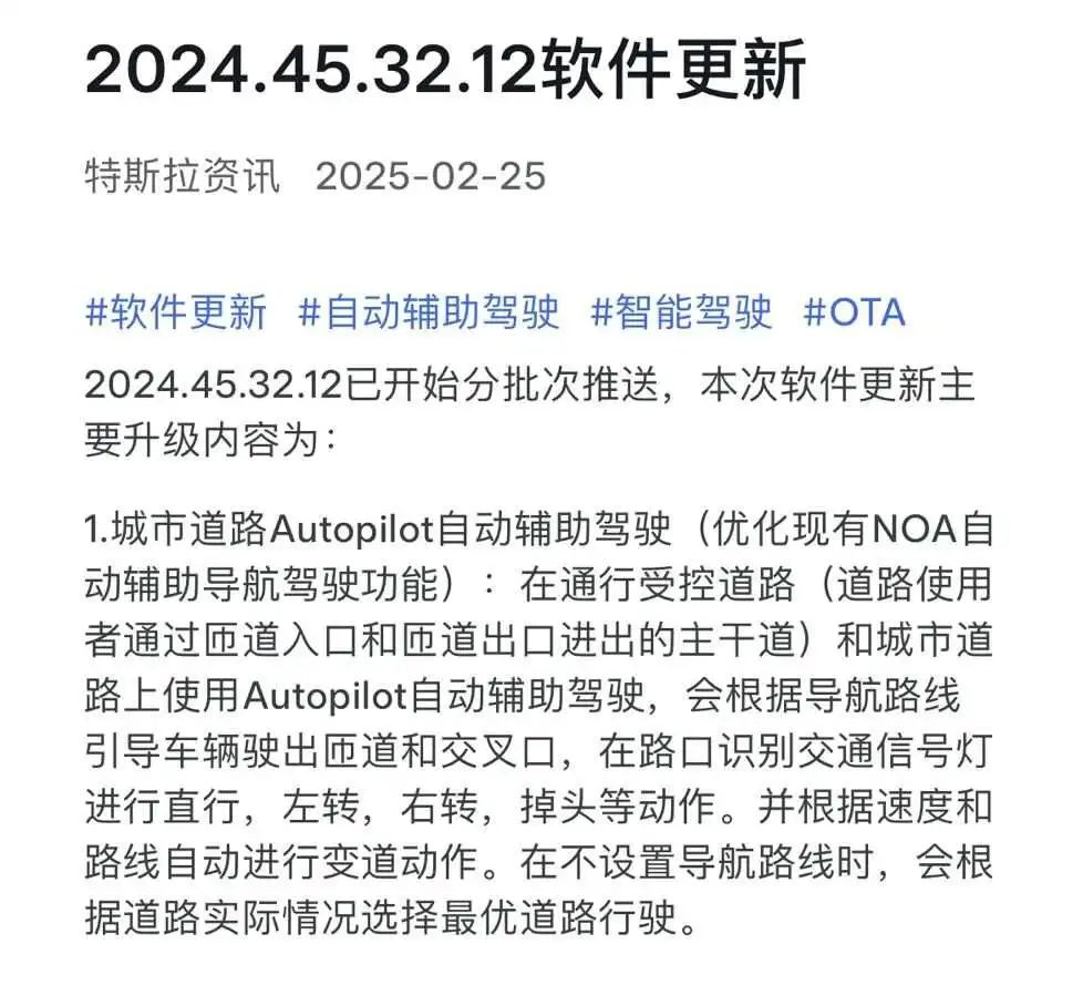 2月25日,特斯拉中国官方发布了FSD智能驾驶软件更新的消息,更新后车辆能在城市道路直行、左右转、掉头、自动变道等。此外,车载摄像头还将监控驾驶员的注意力。