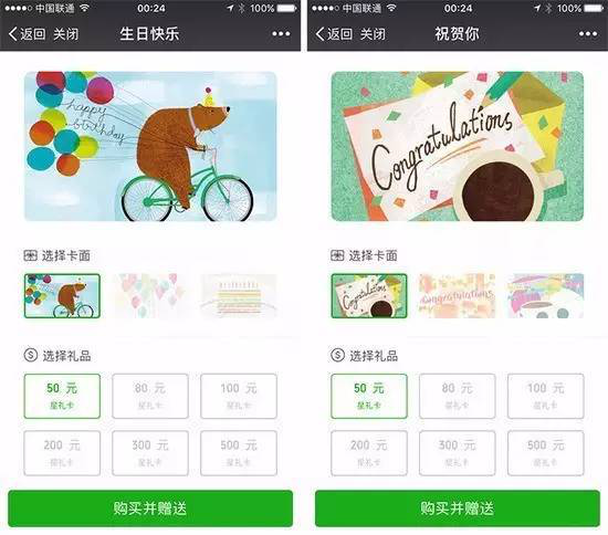 今年情人节前后,星巴克上线用心说活动,微信用户可以随时随地的在微信上为朋友购买一杯饮品券,并且送上定制祝福语。