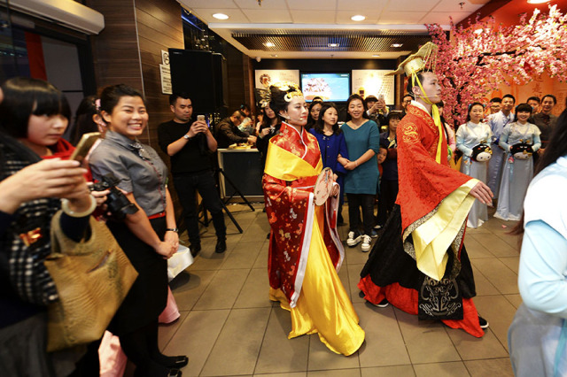 接着在全国各地部分门店开展线下“穿越秀”,身着古装的“皇上”、“皇后”、“大臣”登场,在一阵的表演之后开始进行封赏——赐皇后“本宫凤堡”,各妃嫔“爱妃笑泡泡茶”,众臣“万事大鸡盒”,小斯“鸡祥如意盒”、普天“好运鸡柳”……