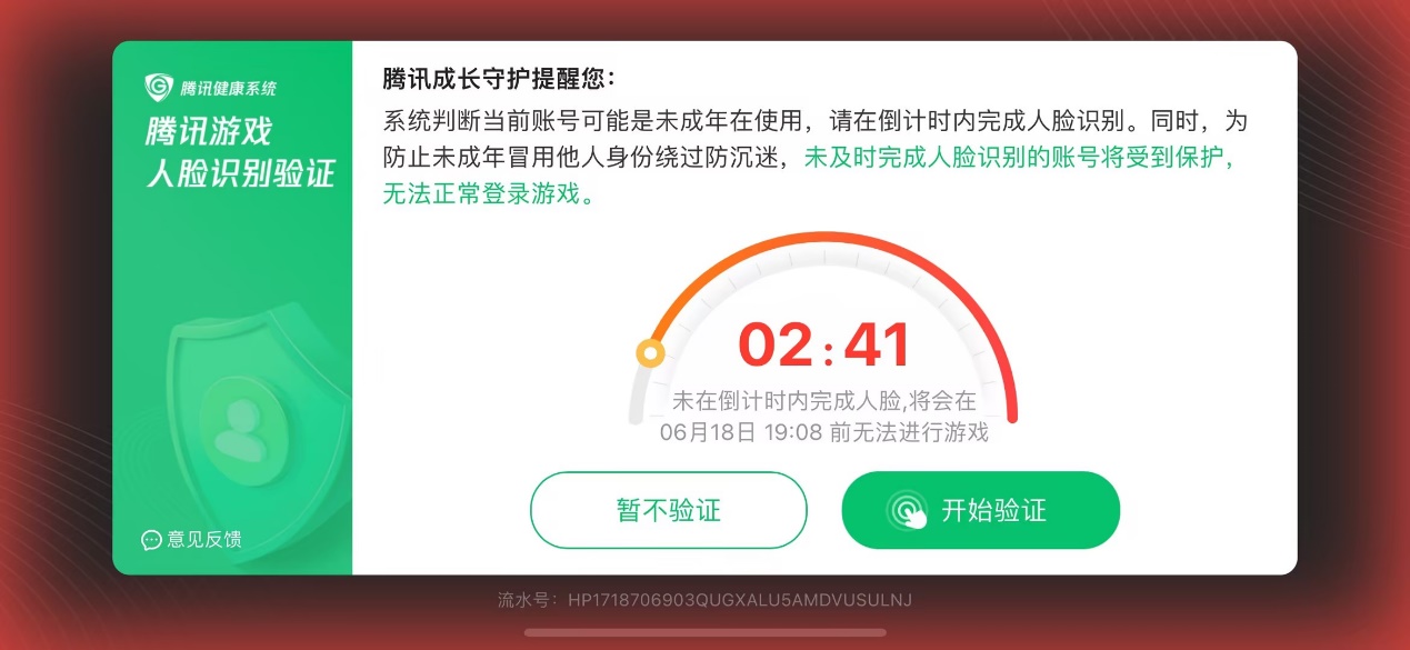 在相当长一段时期,“严防” 未成年人沉迷,是游戏公司的首要任务。腾讯游戏更是主动加码,将禁止充值的年龄界限划定在 12 岁以下,远超相关要求中的 8 岁标准。为保障实名制成效,腾讯率先将人脸识别策略全面应用于防沉迷系统。
