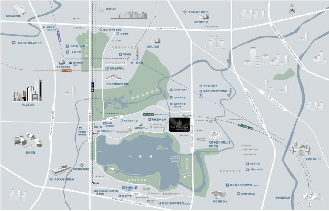 核心资产与区域需要有与世界接轨的便利交通。地铁1、18、19号线与规划中的16号线,支撑起公共出行的交通骨干,无论是双国际机场,还是天府高铁站,都能“一键传送”,满足精英人士10小时飞全球和5小时全国城市行。
