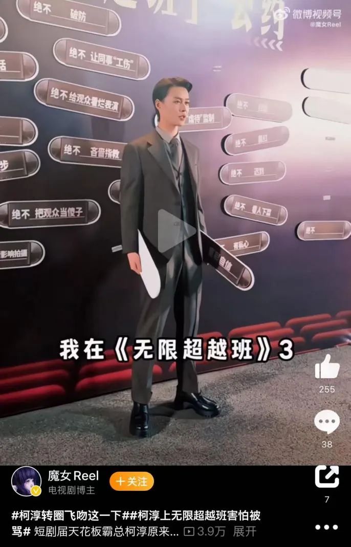 而还处在风口上的柯淳,已经迅速加入到了综艺阵营,参与到《无线超越班3》的录制。另外还有一位头部短剧演员何健麒也参与了节目的录制。