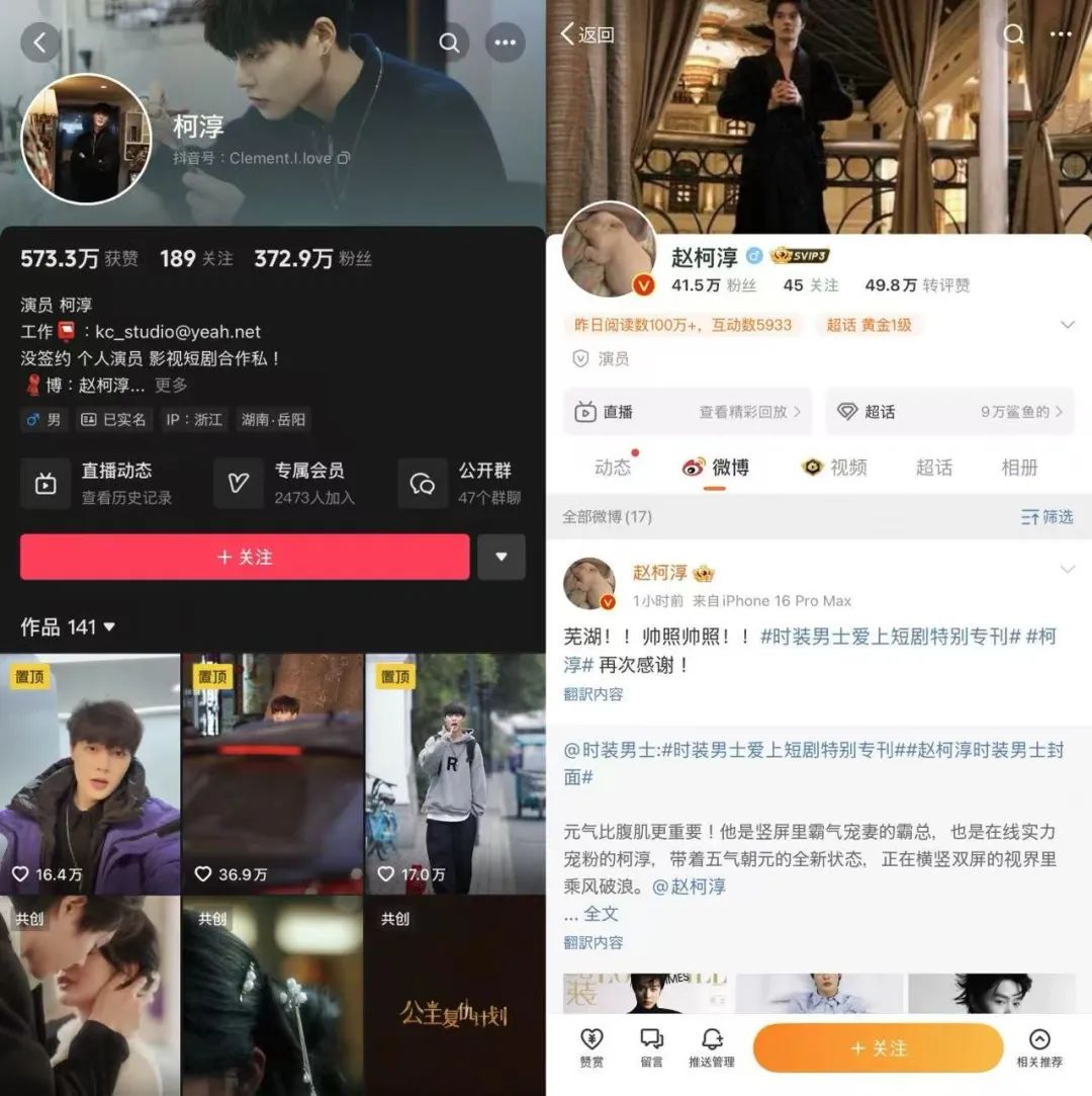 相较于长剧这种更广泛、普适的传播,短剧依托于兴趣推送,更容易在算法驱动下直击核心受众。且相较于内容更复杂的长剧,短剧主要演员少,主要角色的记忆点相对更深。这两种优势,都有利于短剧更迅速地转化热度为对演员的支持,正如柯淳《费加罗MODE》惊人的销量表现。