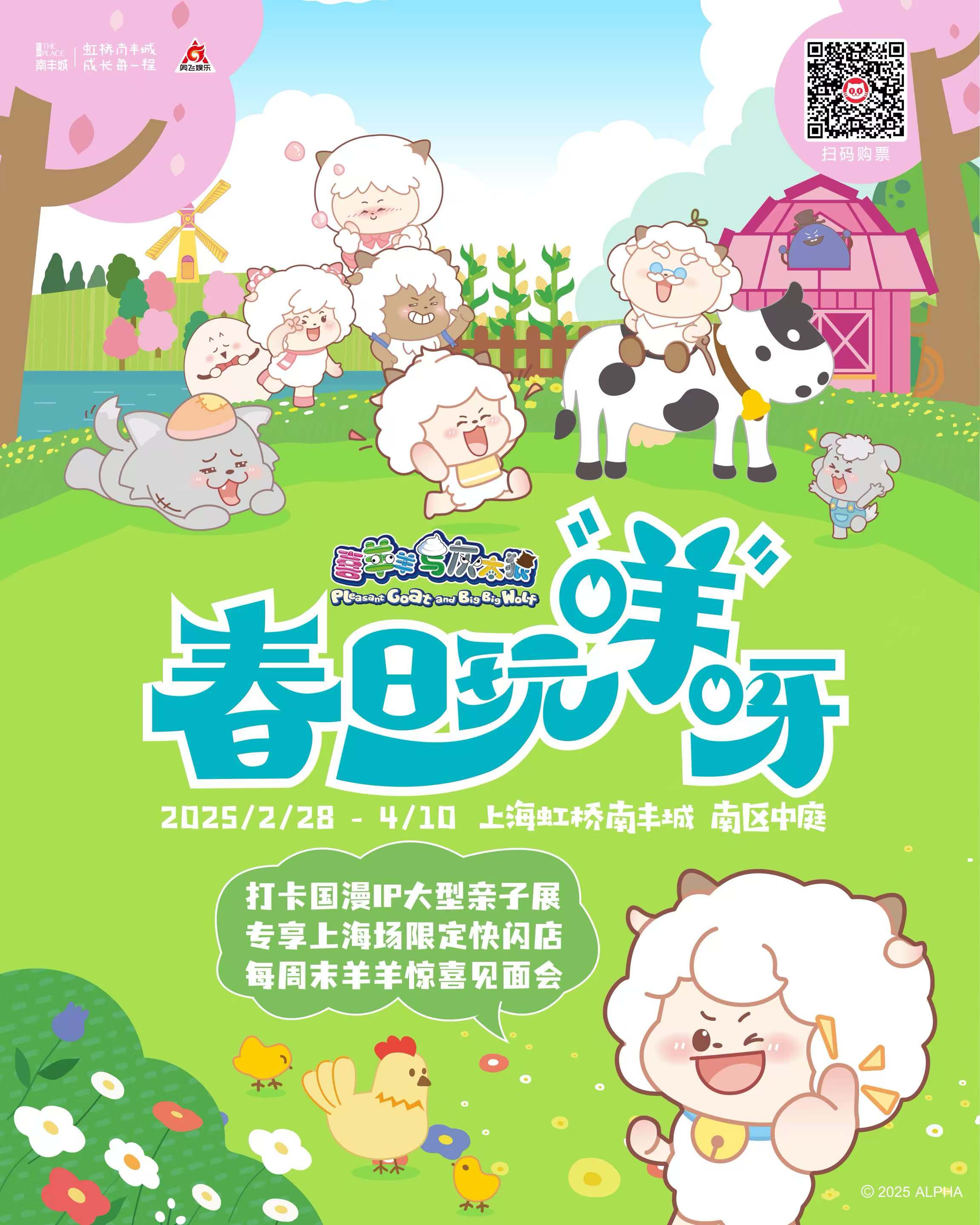 当青葱草原的朝阳再次漫过时光的山丘,喜羊羊与灰太狼的故事已走过二十载光阴。这些年,有人随着成长渐渐淡出喜羊羊的世界踏上属于自己的人生旅途,也有源源不断加入的小小成员,但每当主题曲响起,记忆的缆车就会立刻呼啸而至。2025年2月28日至4月10日,虹桥南丰城南区中庭将化身为青青草原,让羊村的故事在这里生动再现,开启一场关于成长、友情与欢乐的春日之旅。