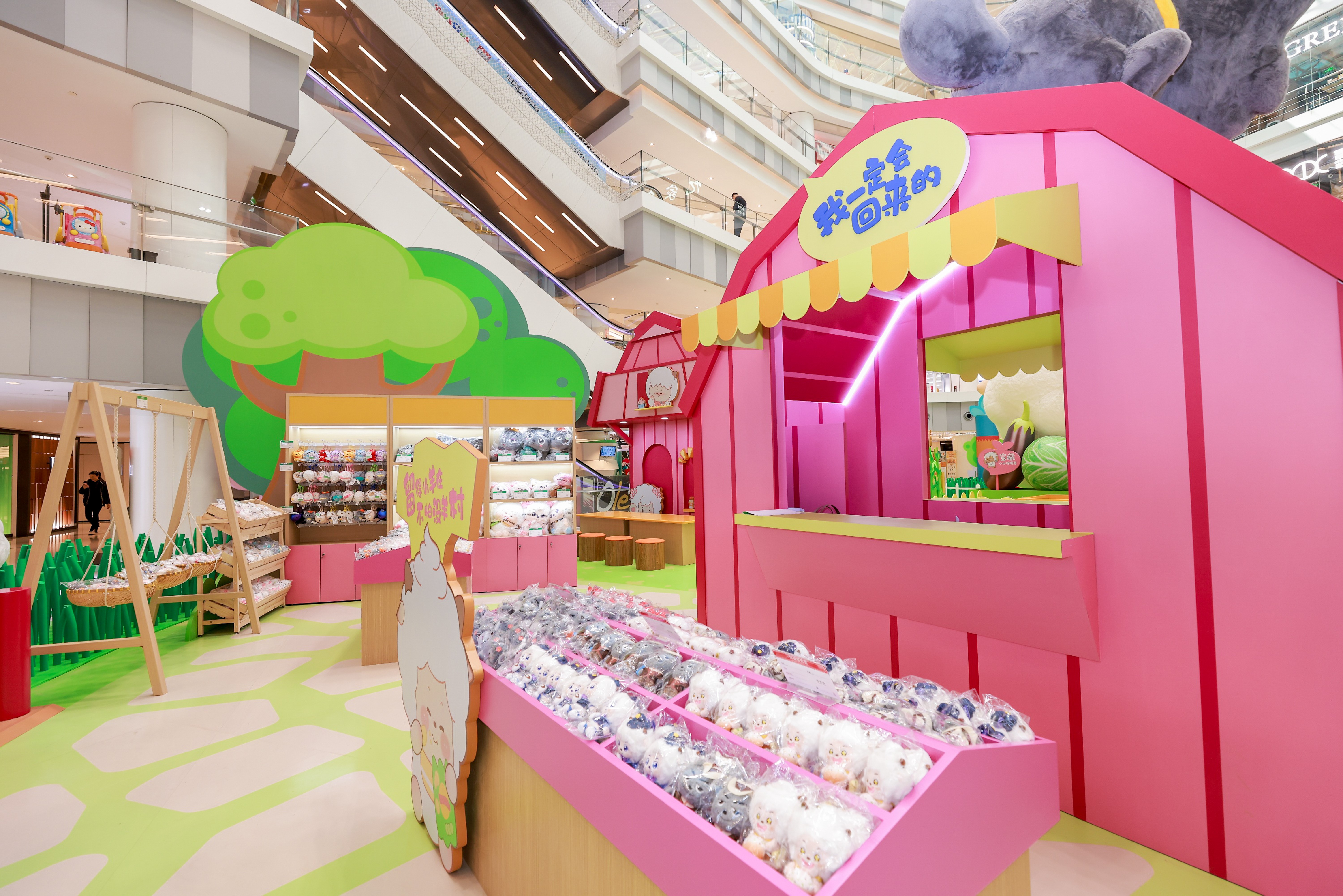 离开羊村前可以至“农产小档口”验收自己的农耕成果,在这里,懒羊羊为大家准备了上百款精美的周边,以及农场主题限定商品。此外,为满足不同圈层的消费、娱乐需求,中庭还特别打造“羊村大舞台”,在这里每周末将限时上演精彩舞台剧和羊羊见面会,还将定期举办多样化的市集活动。
