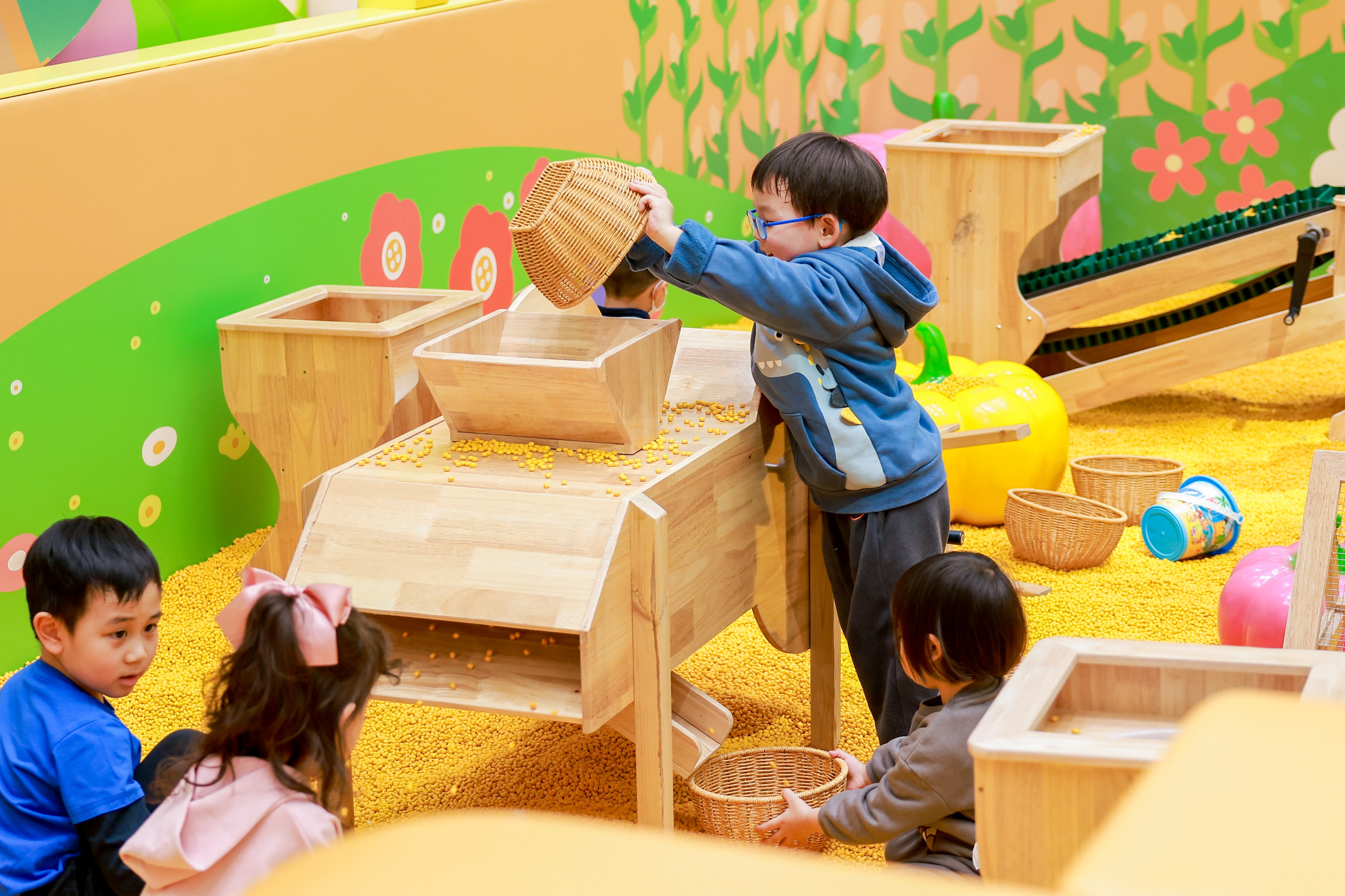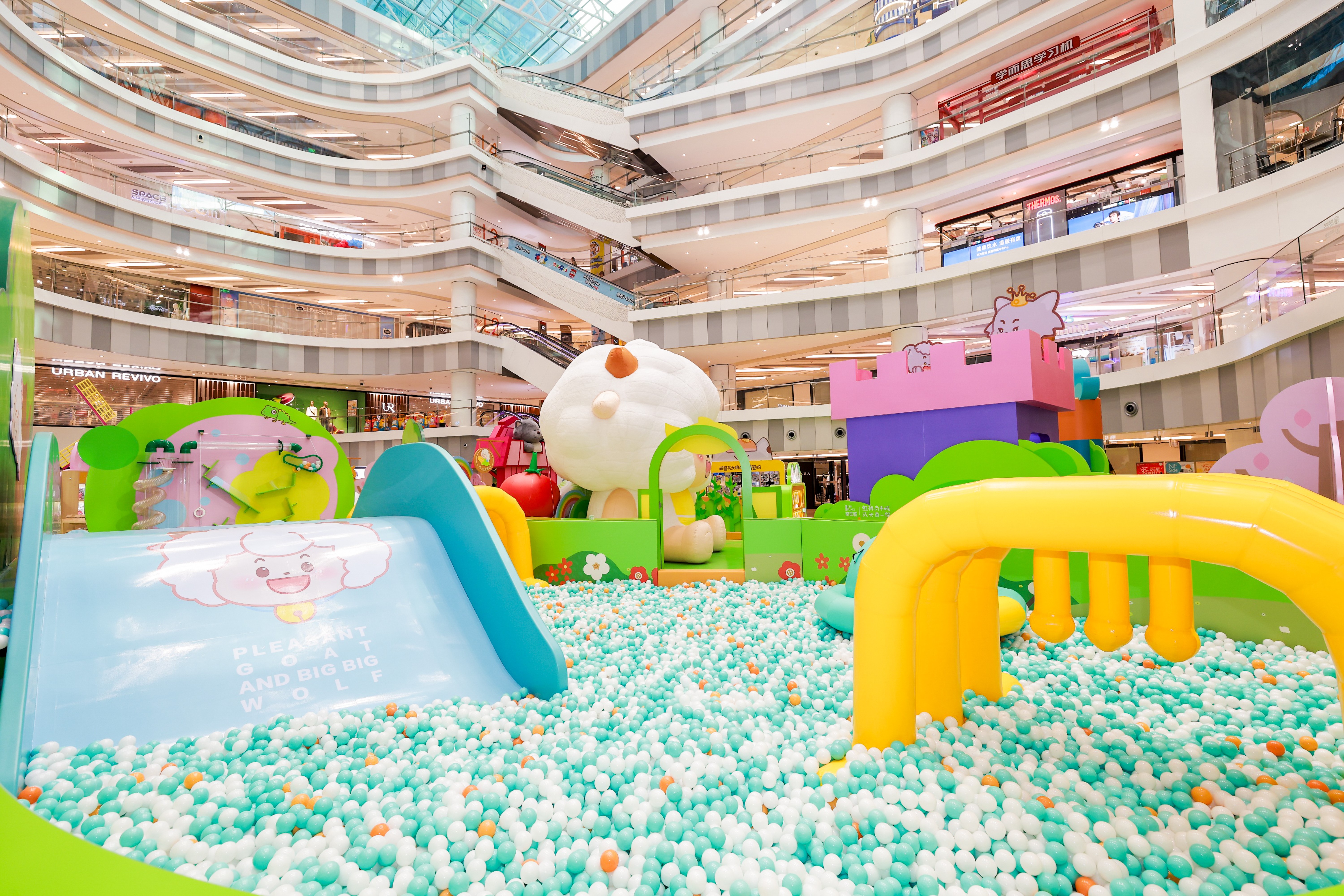 在2月28日至4月10日期间,为了全方位地满足各类家庭的多样化娱乐需求,虹桥南丰城特将大自然元素融入城市商业空间,在南区中庭营造新颖独特的羊村春日农场互动场景,并于农场入口处复刻羊村标志性大门,大小朋友们只要穿过大门,即可沉浸式体验羊村春日氛围。紧邻羊村大门,由海洋球池和大型滑梯组成的“渔趣欢乐天地”映入眼帘,小朋友们可以纵身跳入五彩斑斓的海洋球池中,尽情翻滚,享受无忧无虑的快乐时光。对于喜欢动手体验的小朋友们,不妨去“宝藏挖掘家”和“撒欢玉米地”瞧一瞧。“宝藏挖掘家”区域铺满了仿真泥土,小朋友们可以化身小小农场主,在泥土中挖掘出土豆、萝卜等丰富的农作物,收集完毕后通过“运输小能手”运输通道,即可将农作物运至农产小档口;在“撒欢玉米地”区域,不仅可以在金黄色的玉米沙池中尽情体会播种与谷物制作的乐趣,还有“农场翻翻乐”、“母鸡下蛋”两大互动玩法,解锁与灰太狼和羊羊们的趣味体验。