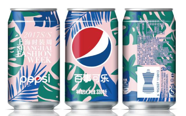 作为时装周官方指定碳酸饮料类合作品牌,这已经是百事连续第四年合作了。百事拿瓶身包装玩花样已经是它的惯用方式了,在之前的几次时装周,百事也曾经推出过不同的设计款限量罐。比起走秀,这种合作看起来比较保险,因为产品本身是品牌可以把控的范围,至少不会出格得太离谱,从而引起社交网络上消费者的吐槽。