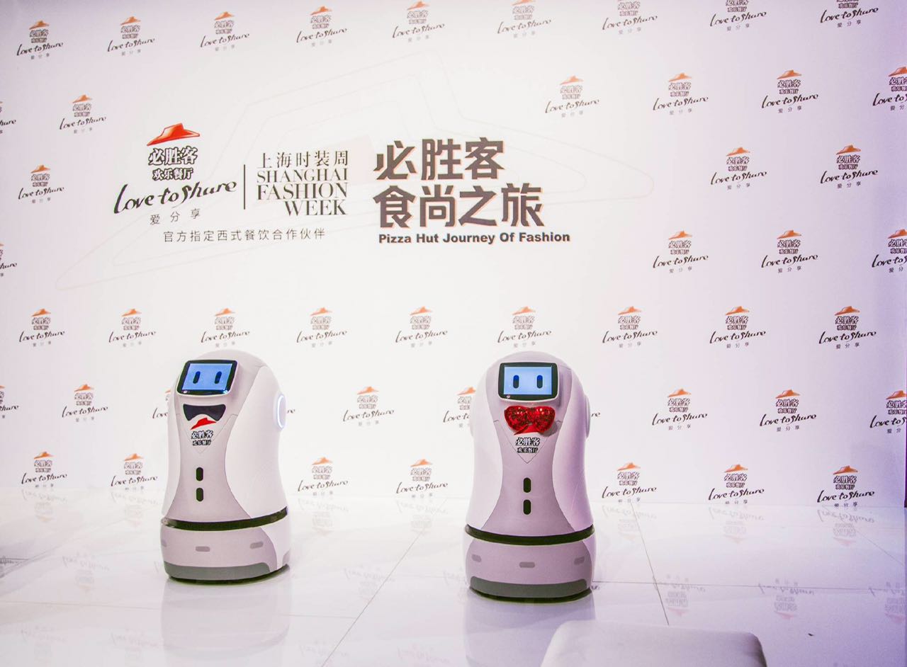 除了新设计以外,必胜客的展览还有去年与“WHERE WHAT WHO”、施华洛世奇等品牌合作联名款的回顾。为了体现必胜客的科技感,它还把点餐机器人搬到了秀场和展览上。