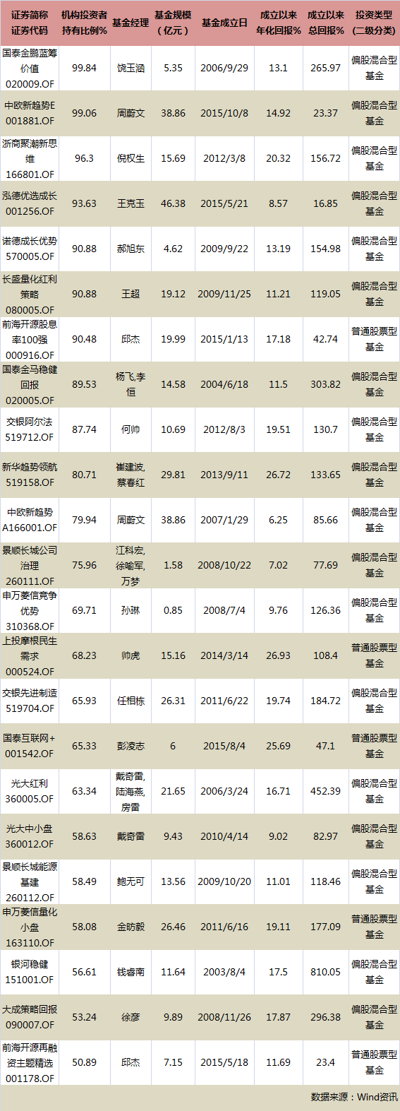 其中有23只基金的机构持有比例超过一半,下表为基金名单: