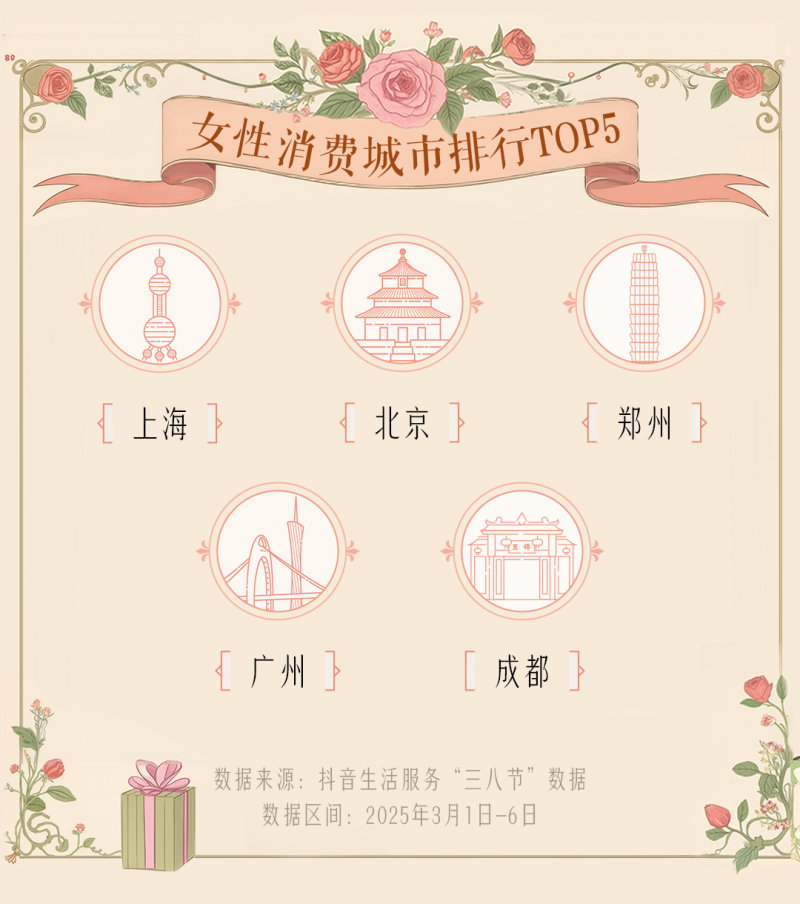 近日,抖音生活服务发布“三八节”消费前瞻数据,呈现节前平台女性消费偏好。数据显示,3月1日至6日,平台女性消费者交易总额同比增长53%,三线以下城市女性消费者数量较去年同期增长超1.3倍。从家庭出行决策到个人文化艺术体验,从悦己消费到春日经济,女性消费呈现多元化、品质化升级趋势,“她经济”正迸发蓬勃活力。