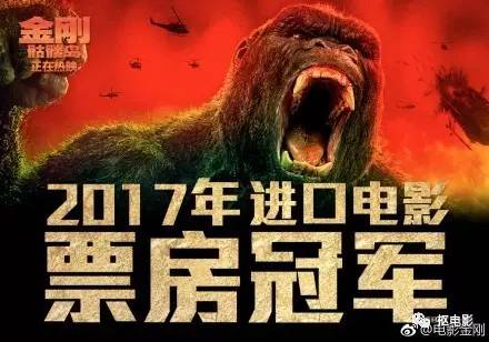 昨天,《金刚:骷髅岛》片方发了宣图,宣布成为今年的进口片票房冠军。