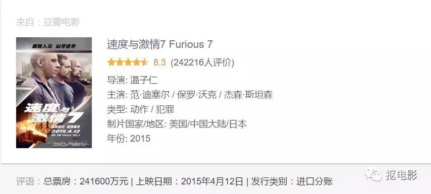 这周五《速度与激情8》一上映,别说今年的进口片冠军,放眼整个进口片市场,《速度与激情7》高居票房榜首的地位都无可撼动。