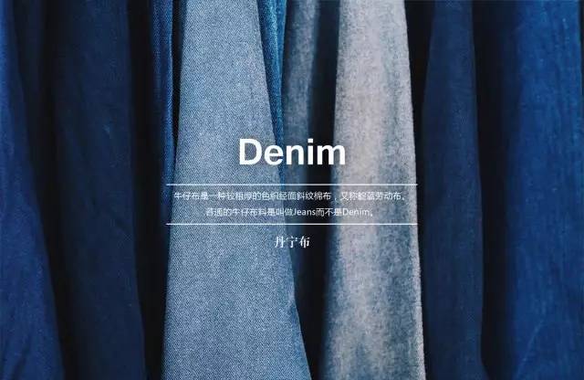 要简单区分牛仔和丹宁,首先从英文词语来讲。牛仔Jeans和丹宁Denim其实指的都是一种布料。