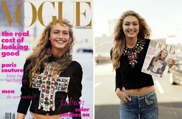 没过多久,Vivienne Westwood、Dolce &Gabbana等设计师就开始把这种朋克风格的牛仔服饰推上T台。1998年《Vogue》的新任主编Anna Wintour选择了一个穿着Guess磨白牛仔裤的模特,作为她履新后首期的封面。