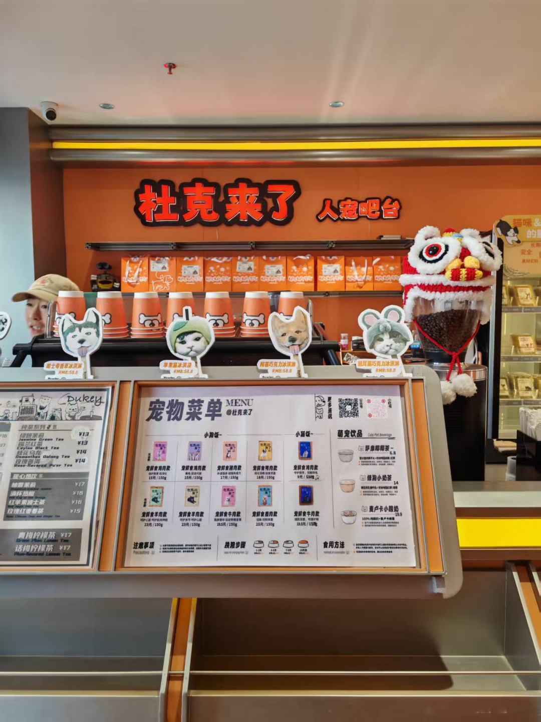 合作品牌“杜克来了”在这里开出了咖啡店,不仅对外供应人类饮用的咖啡茶饮,甚至还有专门为宠物研发的多款奶茶。冰柜里陈列着各种现制的宠物鲜食,一旁的透明塑料柜中摆满了各种经过烘焙风干后的冻干零食,萌宠们前来摇个尾巴卖卖萌,就会得到来自店家的免费小零食……未来,火星宠物超市还将探索“人宠共食”的菜单。