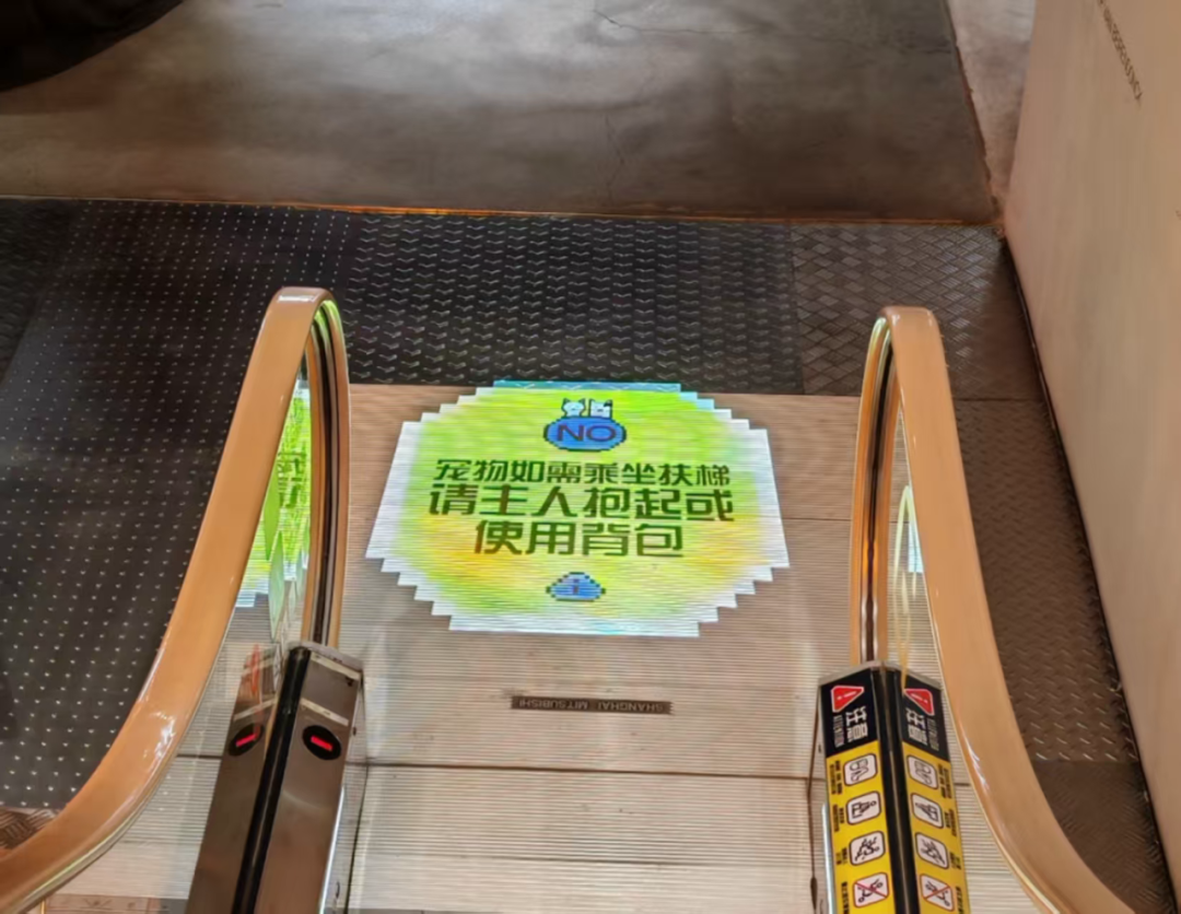 在TheBox商场内部,随处可见“宠物友好”标识。剁椒Spicy注意到,在上下电梯时地上会带有显眼的提示——“宠物如需乘坐扶梯,请主人抱起或使用背包。”