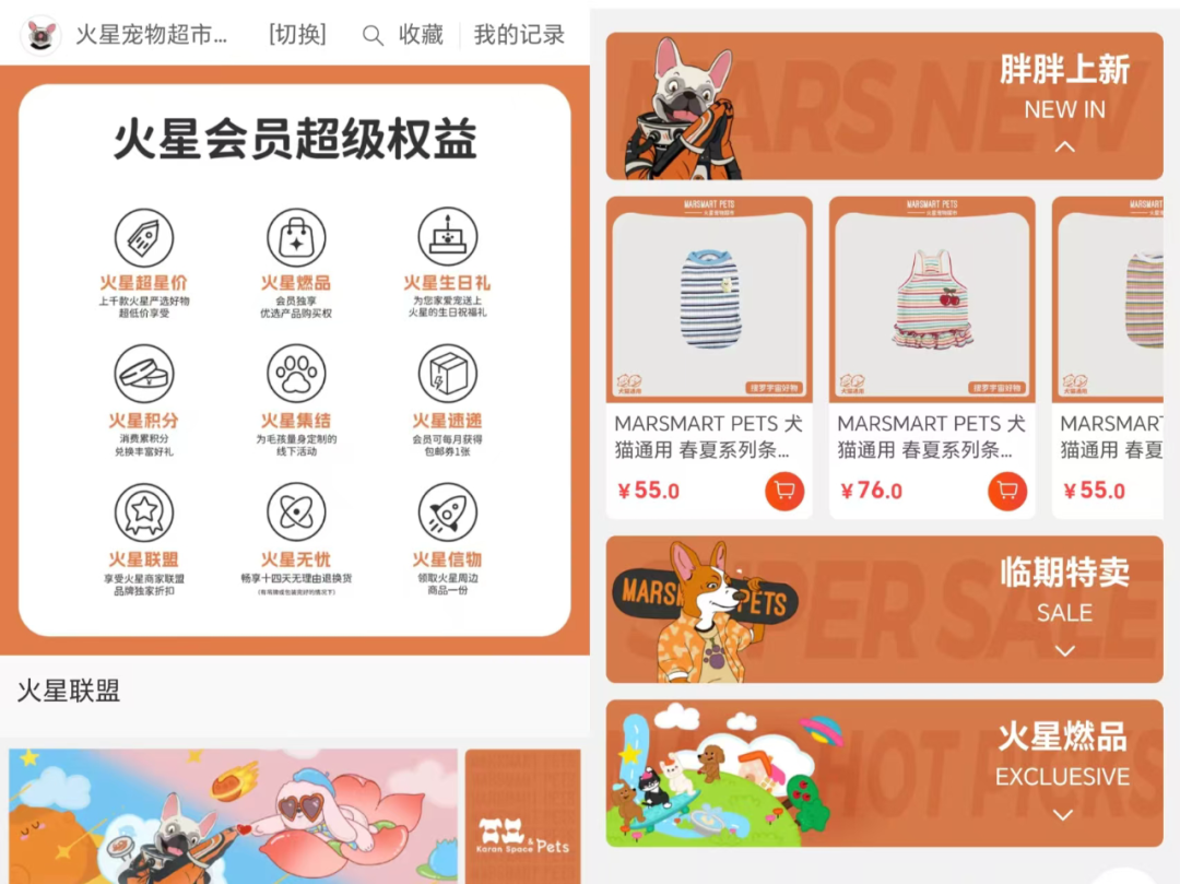 在线上业务板块,此前主要以小程序私域电商为主,去年开始,火星宠物超市开始尝试部署本地生活业务,先后与美团、饿了么达成了合作。